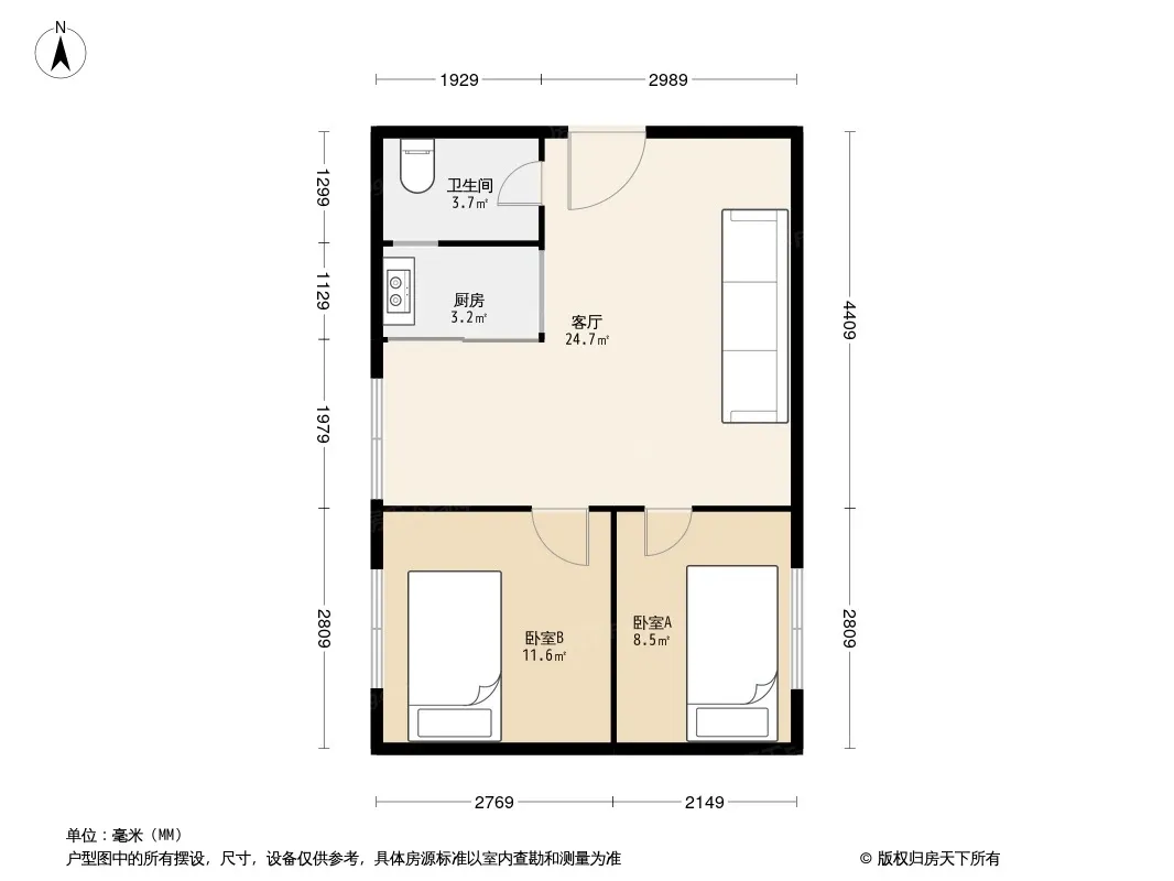 户型齐全,主打客厅朝南二居