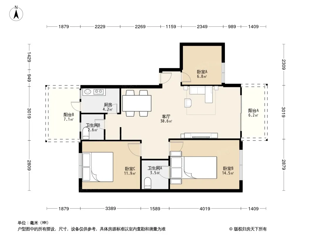 *获取完整户型报告,同时会有免费语音讲解服务