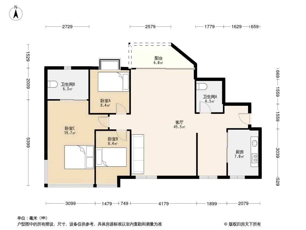 户型齐全,主打明卫三居