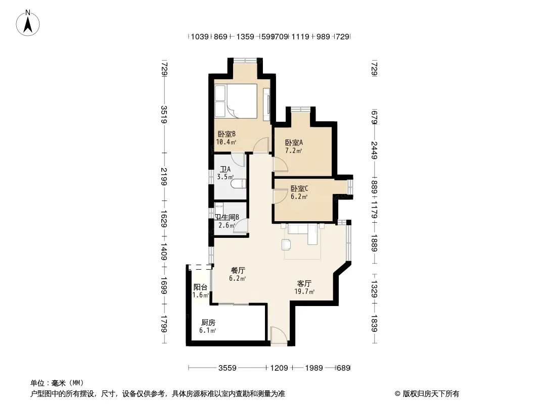 户型齐全,主打明卫三居