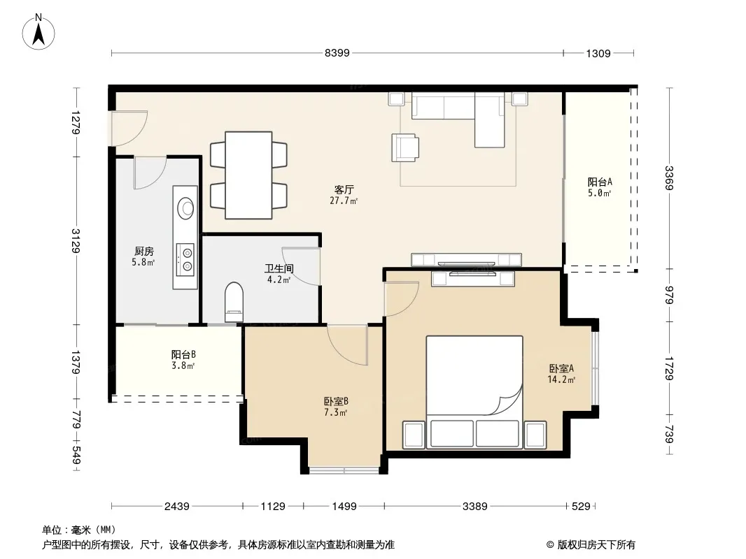户型齐全,主打户型方正,双阳台,主卧朝南二居