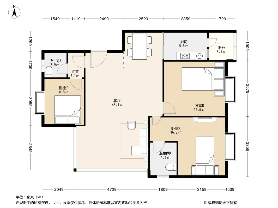 *获取完整户型报告,同时会有免费语音讲解服务