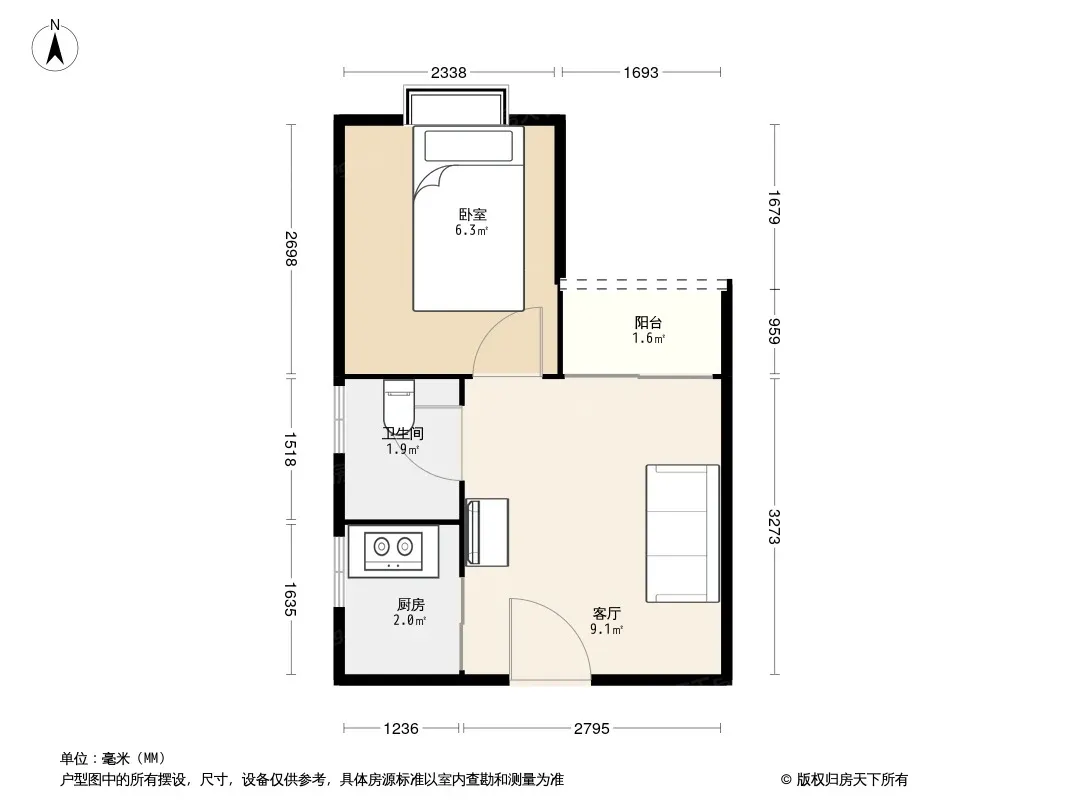 户型齐全,主打明卫,客厅朝南二居