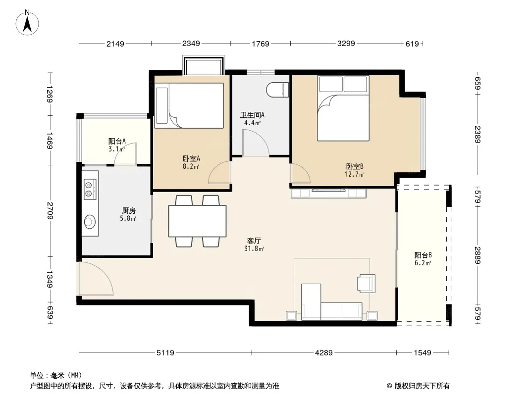 户型齐全,主打户型方正,明厨,明卫,主卧朝南三居