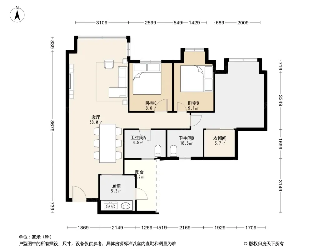 *获取完整户型报告,同时会有免费语音讲解服务