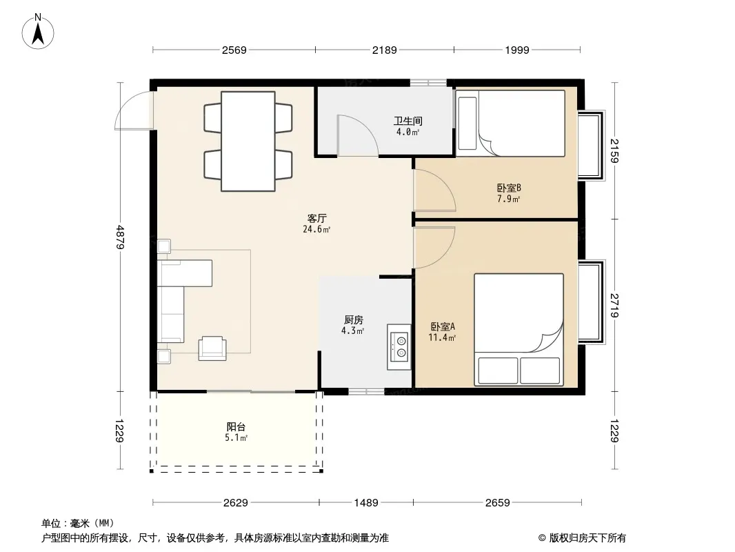 户型齐全,主打户型方正,客厅朝南,双阳台二居