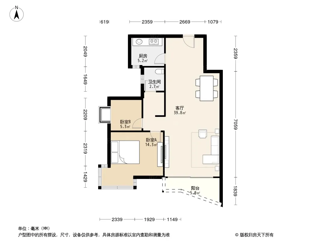 户型齐全,主打明卫,双阳台,主卧朝南三居