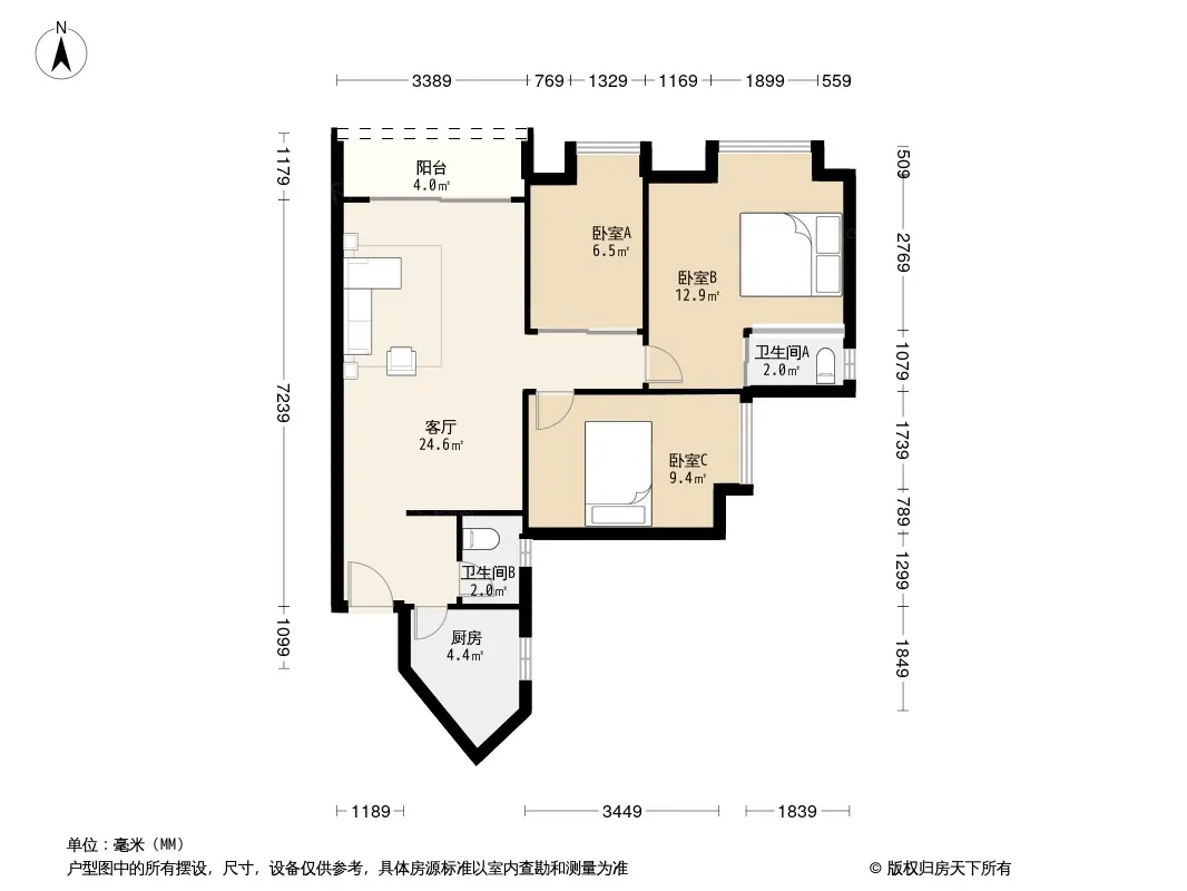 *获取完整户型报告,同时会有免费语音讲解服务