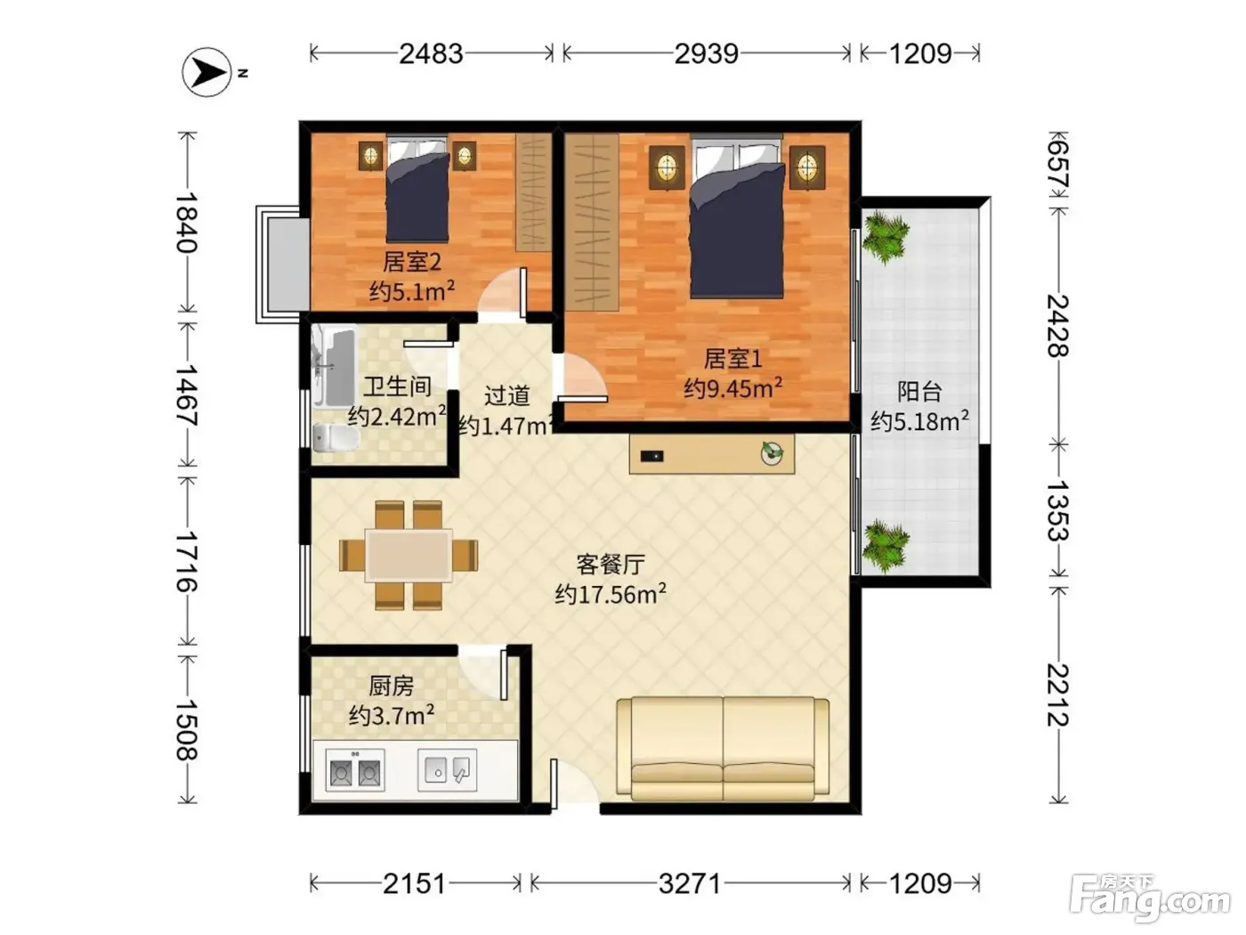 2室1厅