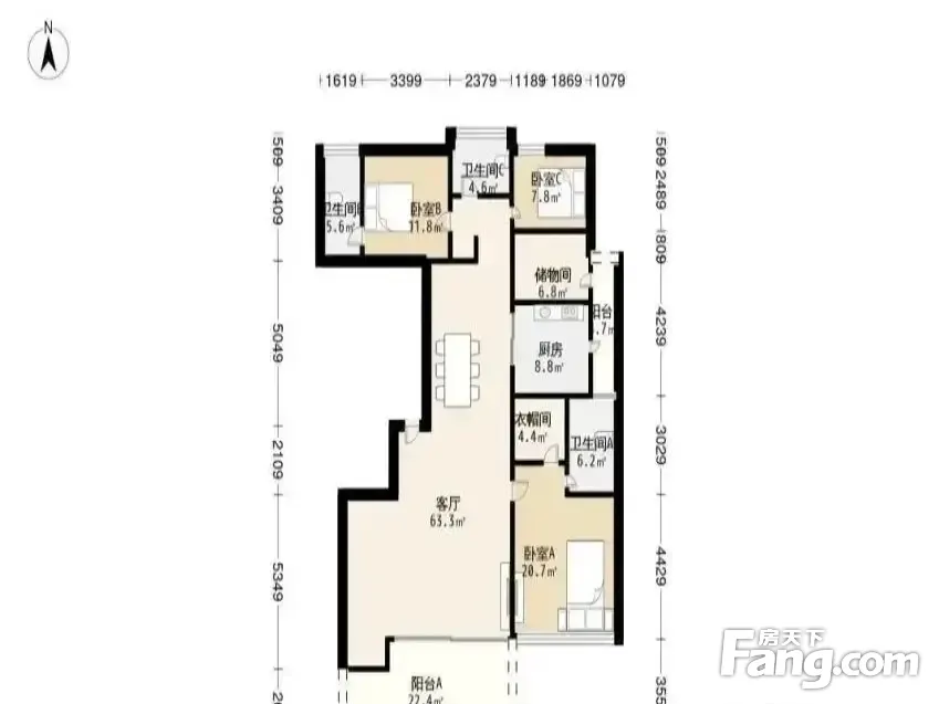 户型齐全,主打明卫三居