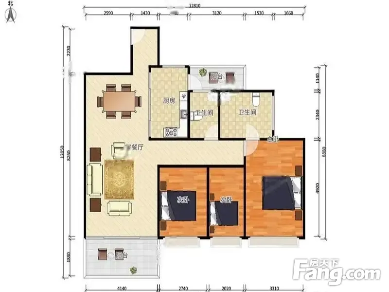 户型齐全,主打明厨,客厅朝南,双阳台,明卫,主卧朝南四居