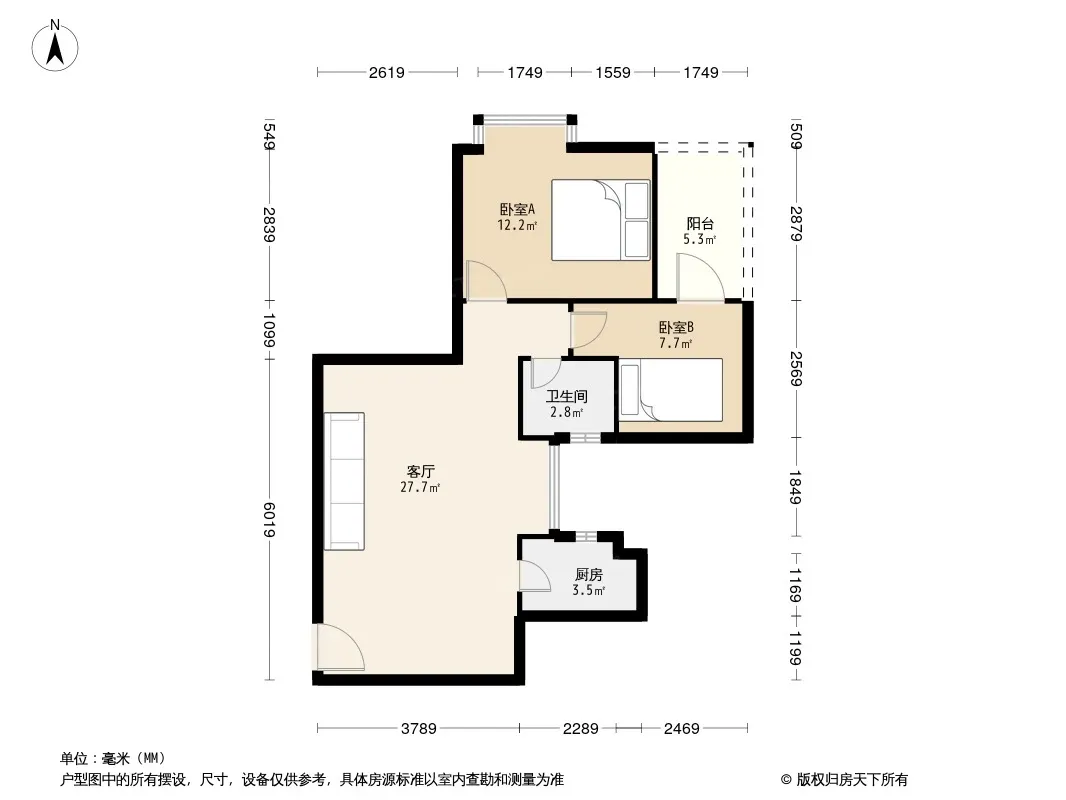 户型齐全,主打户型方正,明厨,明卫,客厅朝南,全明格局二居