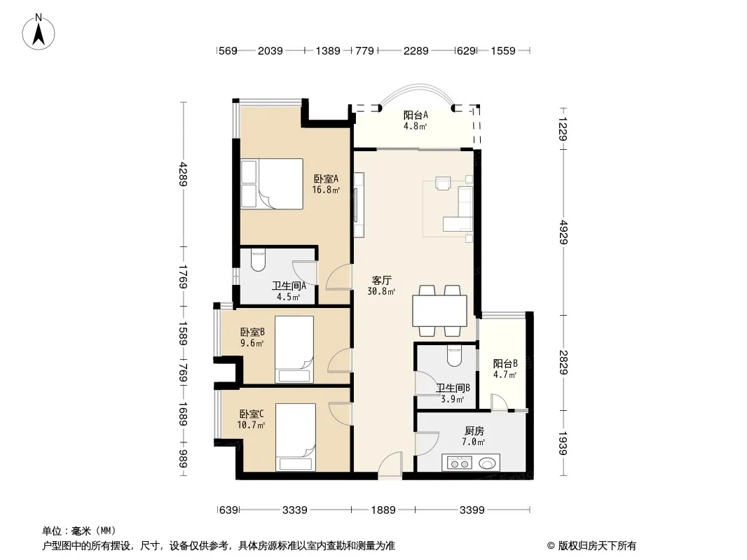 户型齐全,主打户型方正,明卫,明厨,双阳台,主卧朝南三居