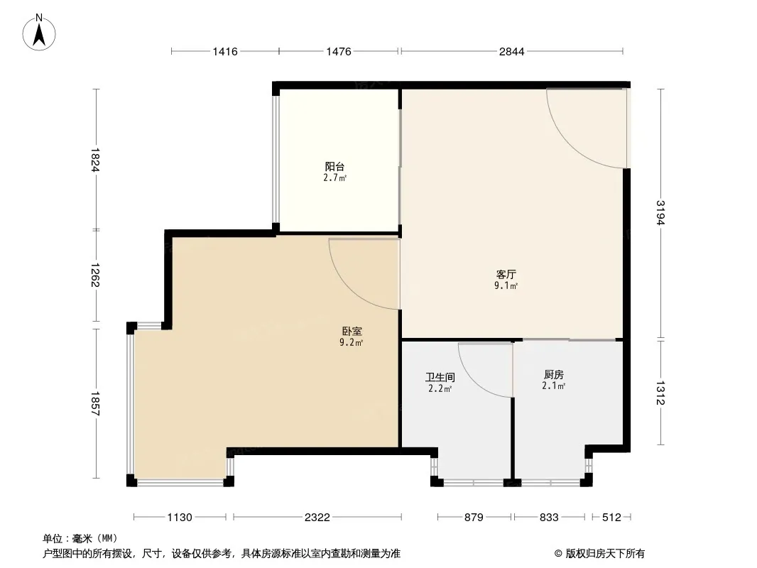 户型齐全,主打户型方正,明厨,明卫,主卧朝南一居