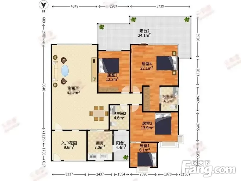 户型齐全,主打明卫,客厅朝南,双阳台四居