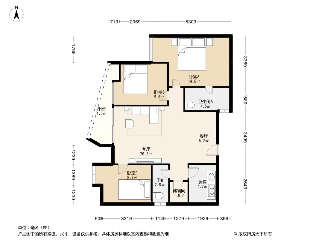 *获取完整户型报告,同时会有免费语音讲解服务