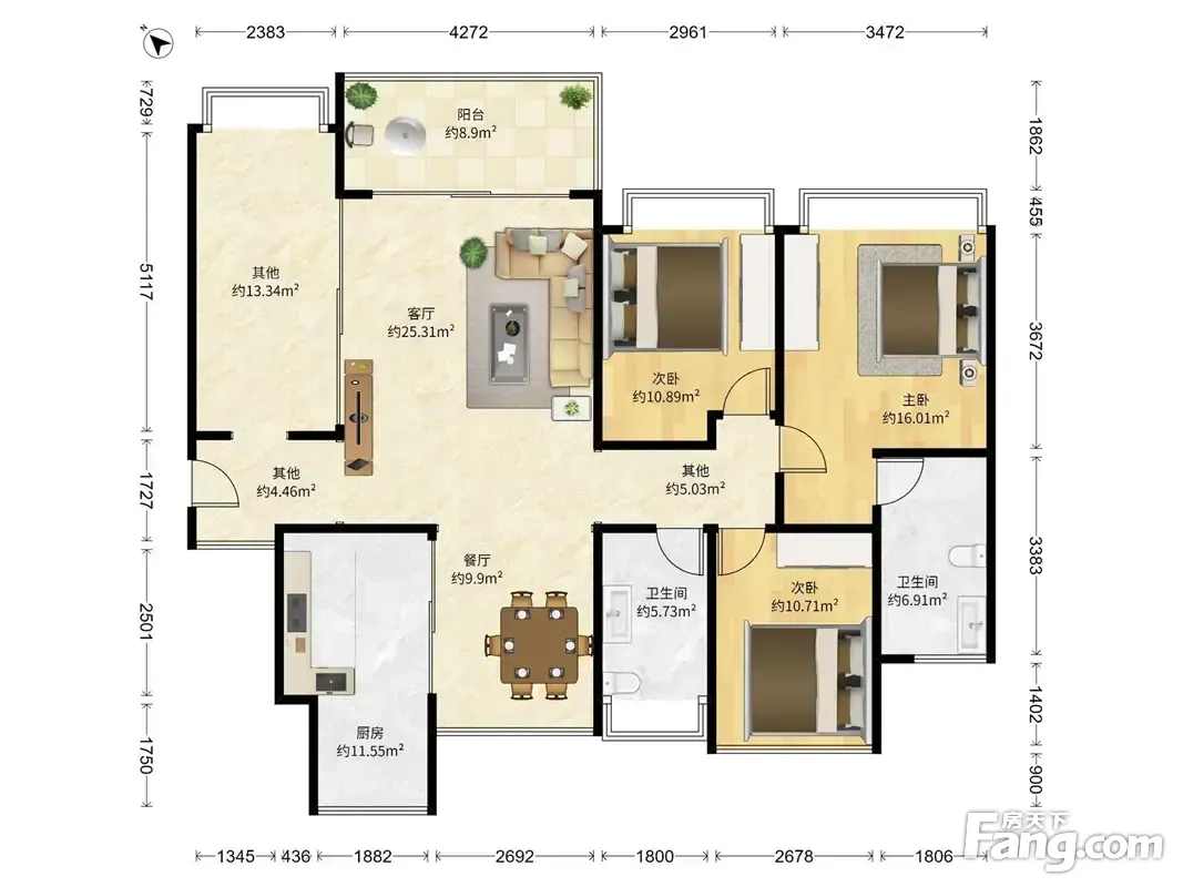 户型齐全,主打采光充足,户型方正三居