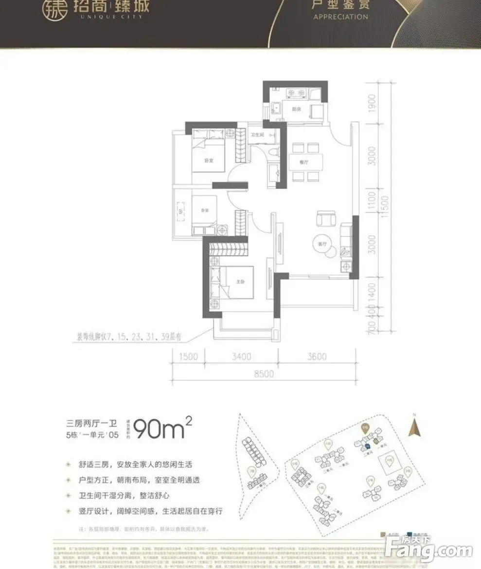 招商臻城户型主要有71平-81平的户型方正,采光充足的二居 、90平-102平的户型方正,干湿分离的三居 、127平-181平的采光充足,双阳台的四居 。