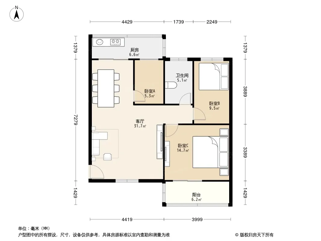 户型齐全,主打明卫,双阳台三居