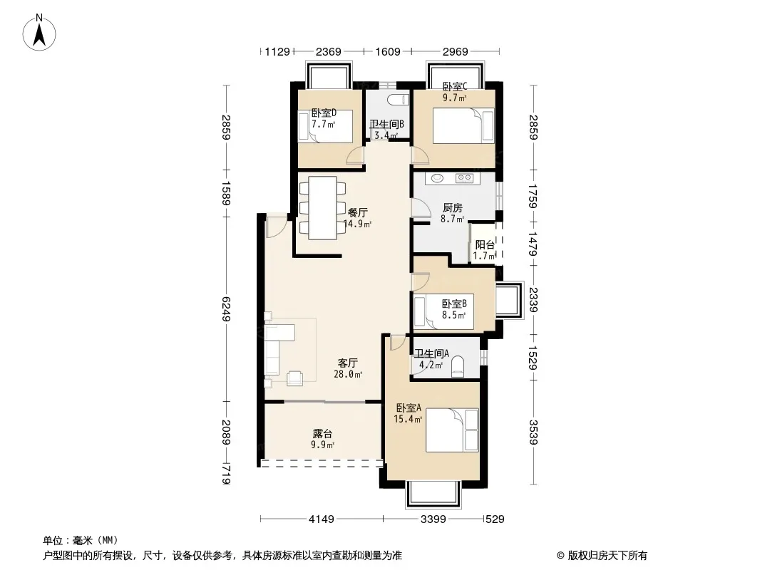 户型齐全,主打户型方正,明卫,明厨,客厅朝南,双阳台三居