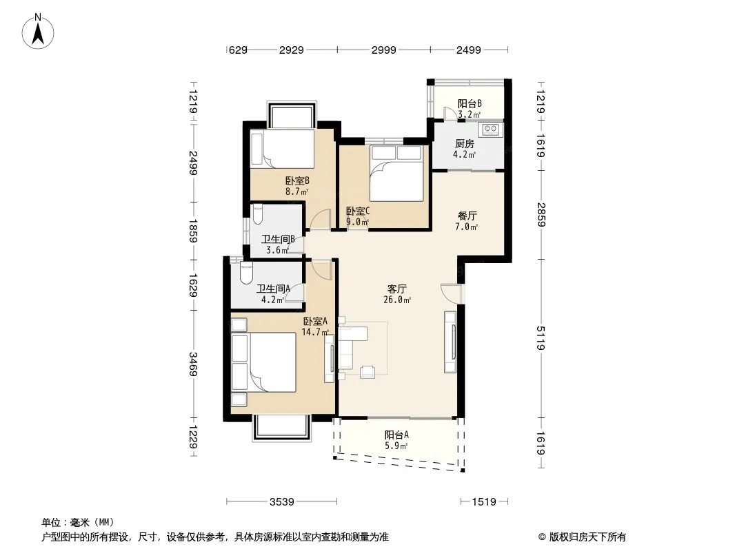 户型齐全,主打户型方正,明厨,明卫,双卧朝南三居