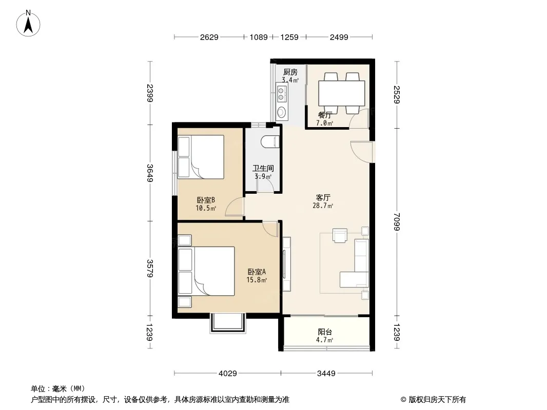 户型齐全,主打户型方正,明卫,明厨,主卧朝南二居