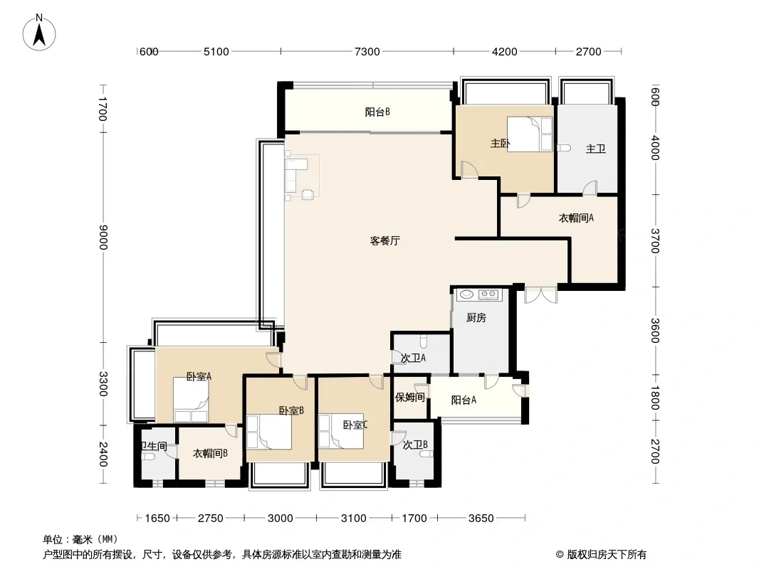 户型齐全,主打南北通透,全明格局,户型方正,主卧带卫,双阳台三居