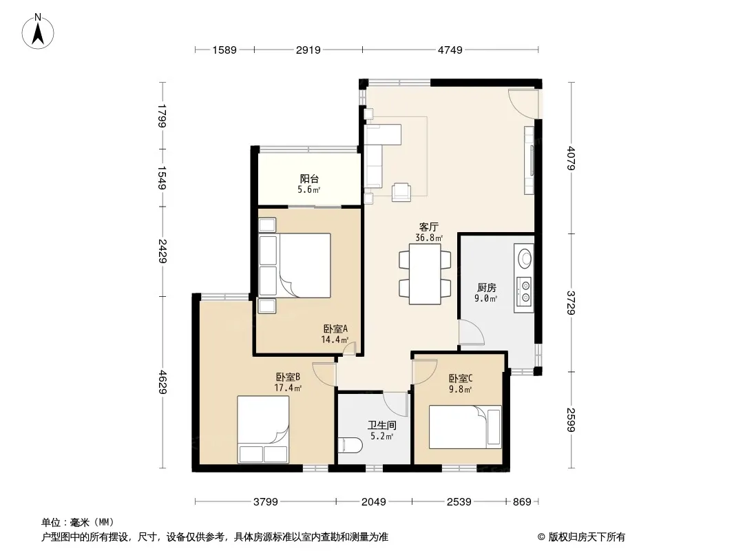 *获取完整户型报告,同时会有免费语音讲解服务
