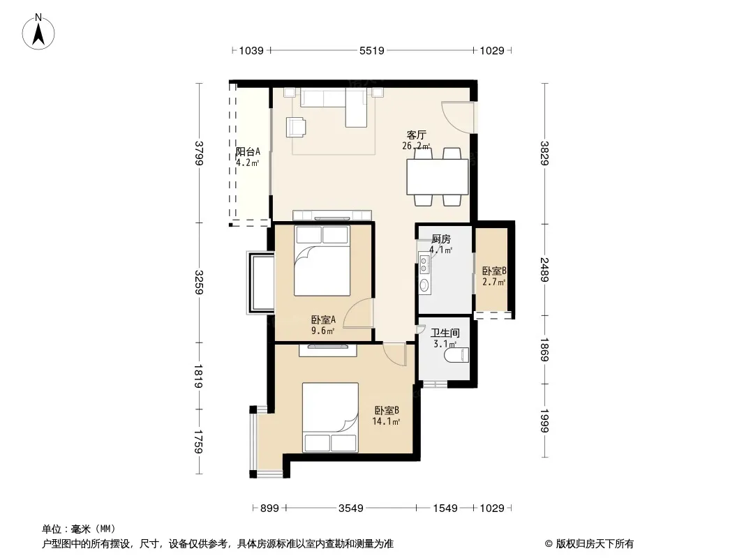 户型齐全,主打户型方正,明卫,明厨,主卧朝南三居