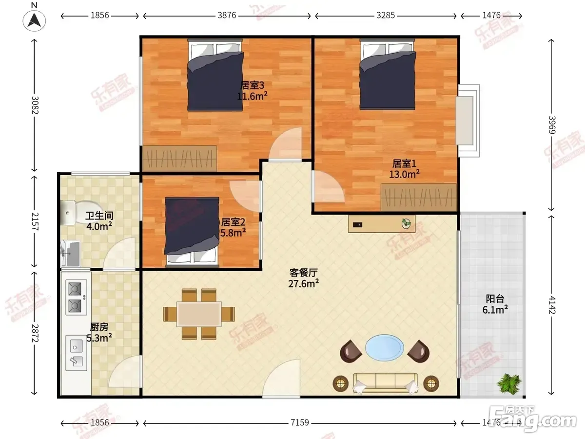 3室2厅1卫