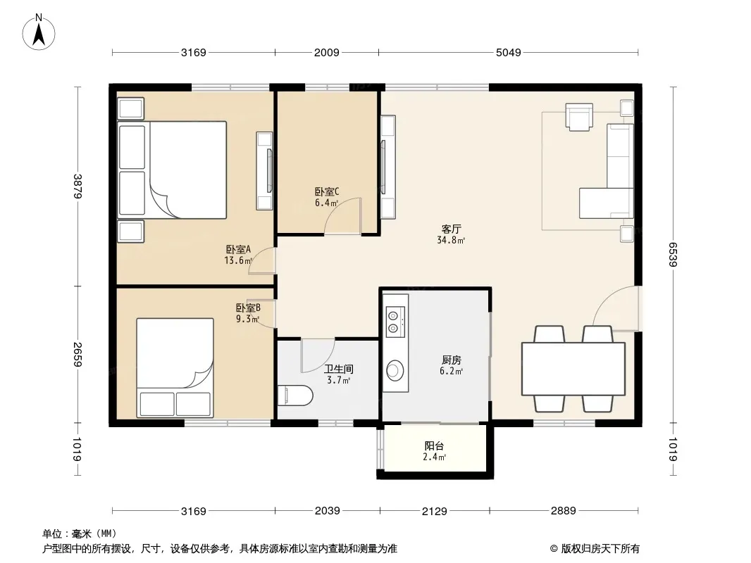 户型齐全,主打明厨,明卫,客厅朝南三居