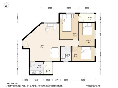 户型齐全,主打户型方正,明卫,明厨,客厅朝南,全明格局三居