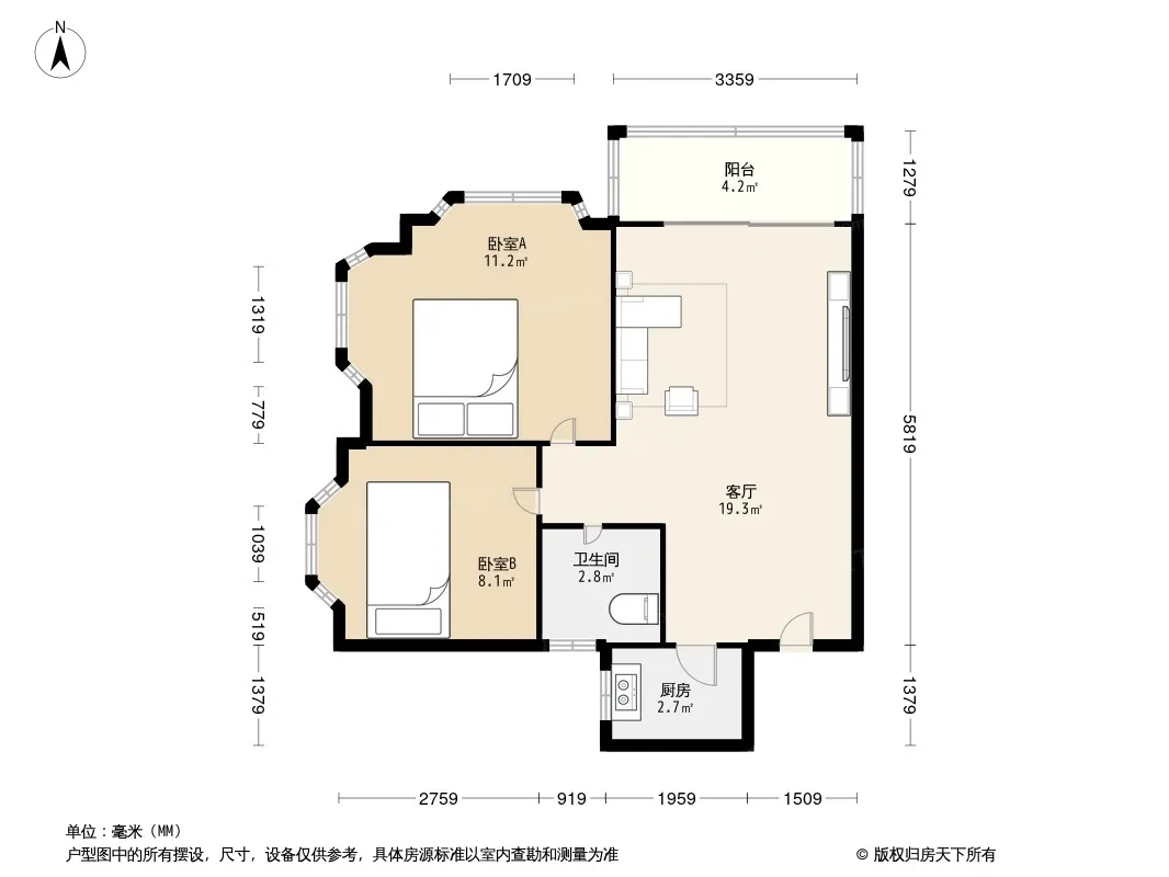 户型齐全,主打户型方正,明卫,明厨,客厅朝南,全明格局二居