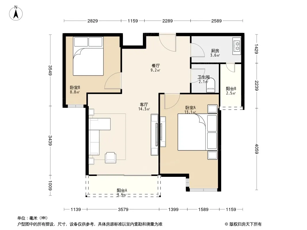 户型齐全,主打户型方正,双阳台,主卧朝南二居