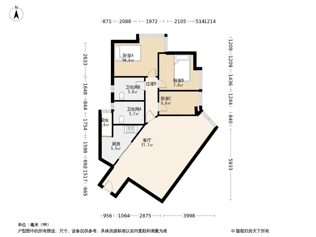 *获取完整户型报告,同时会有免费语音讲解服务