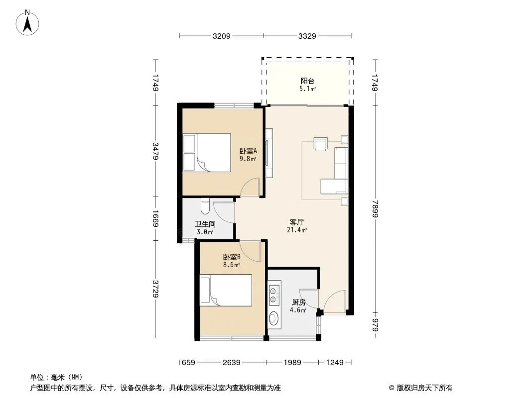 户型齐全,主打明卫,客厅朝南,双阳台二居