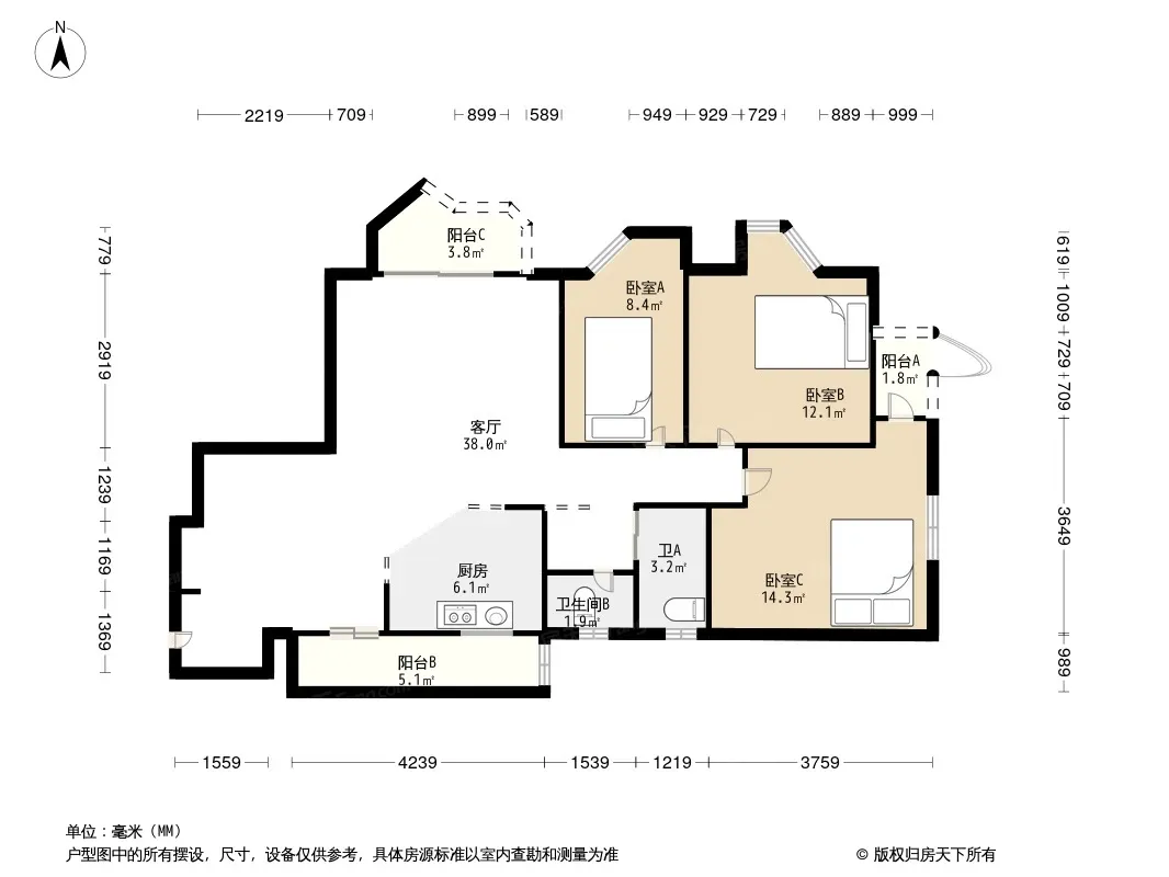 户型齐全,主打明卫三居