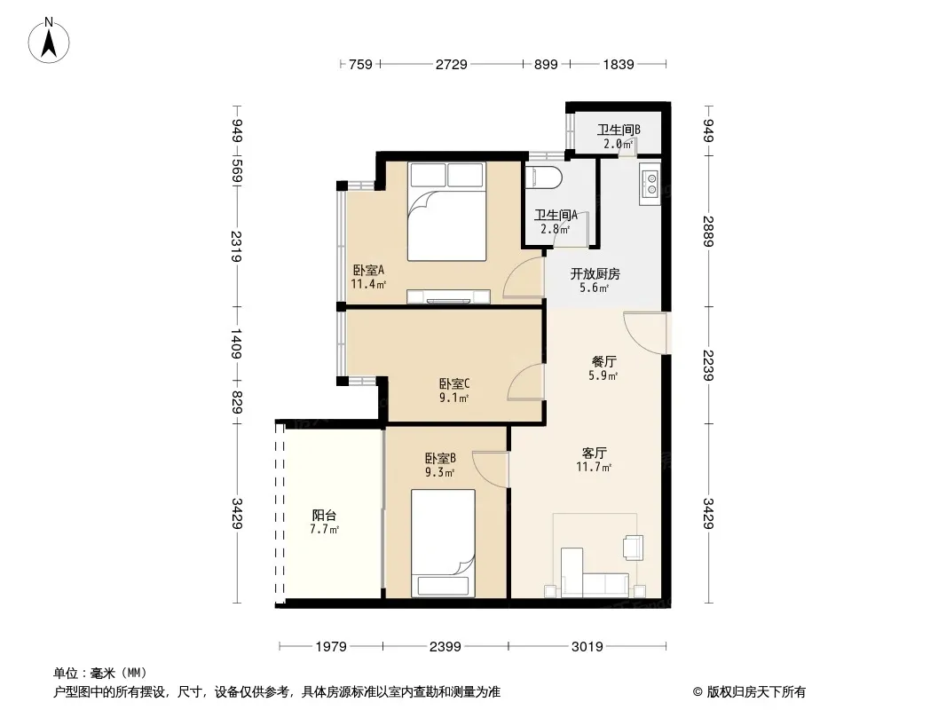 *获取完整户型报告,同时会有免费语音讲解服务