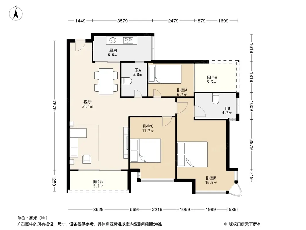 *获取完整户型报告,同时会有免费语音讲解服务