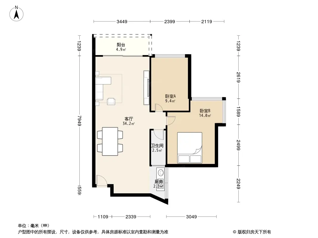 户型齐全,主打户型方正,明厨,双阳台,双卧朝南,主卧朝南三居