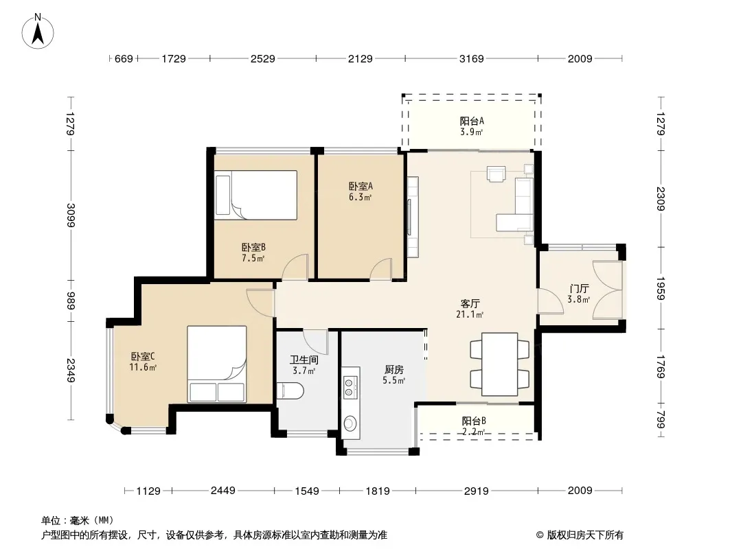 户型齐全,主打户型方正,明厨,双阳台,双卧朝南,主卧朝南三居