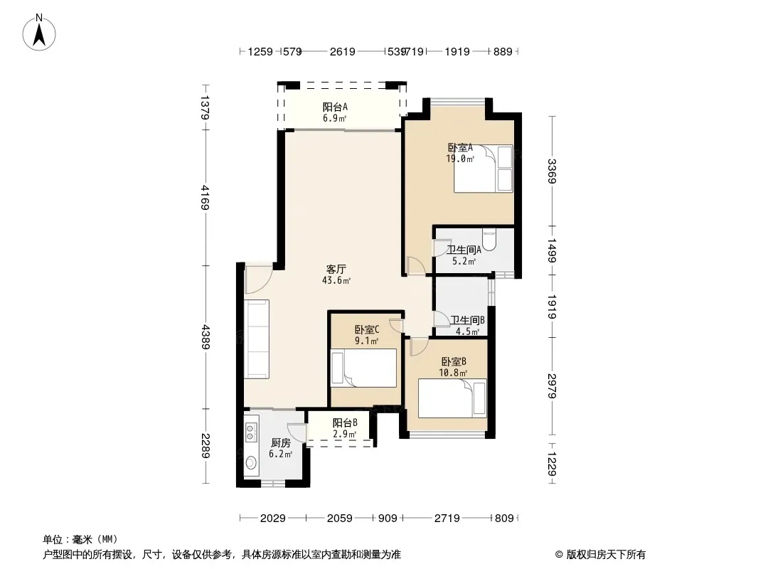 户型齐全,主打户型方正,明卫,客厅朝南三居