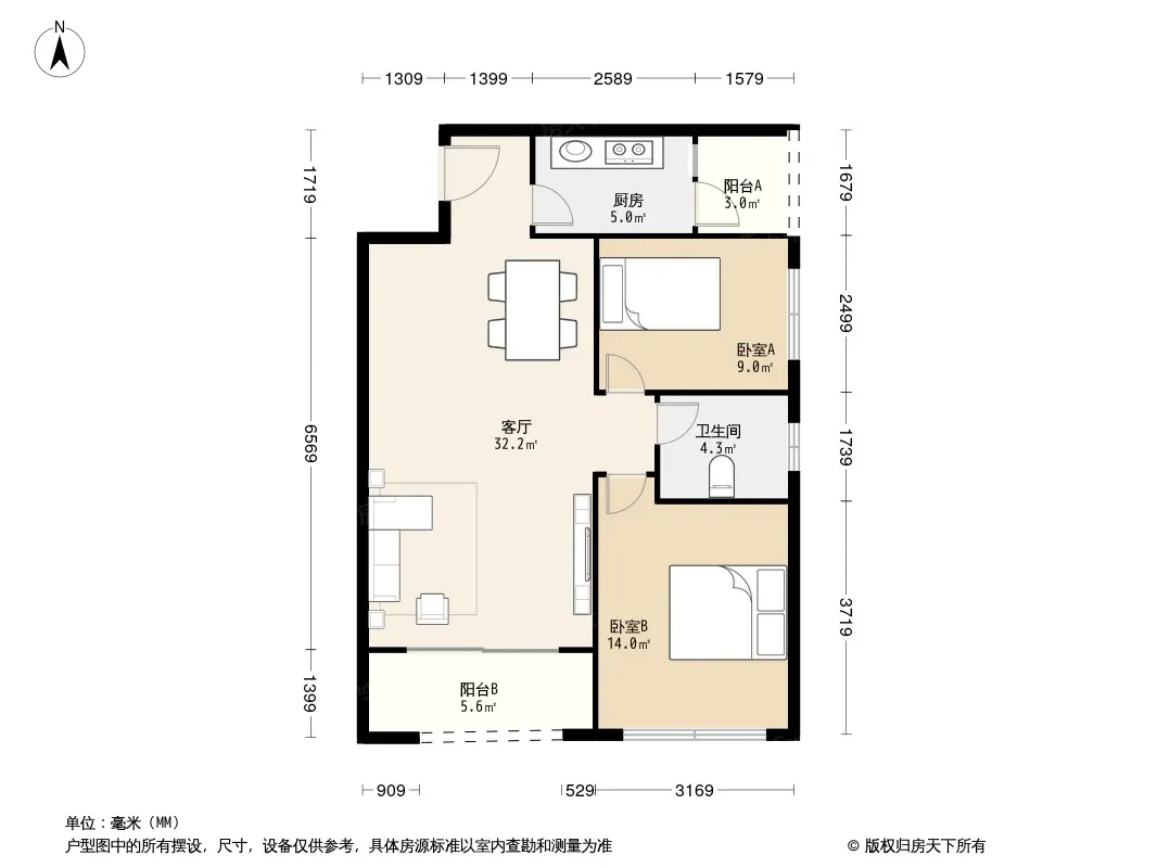 户型齐全,主打户型方正,双阳台,主卧朝南二居