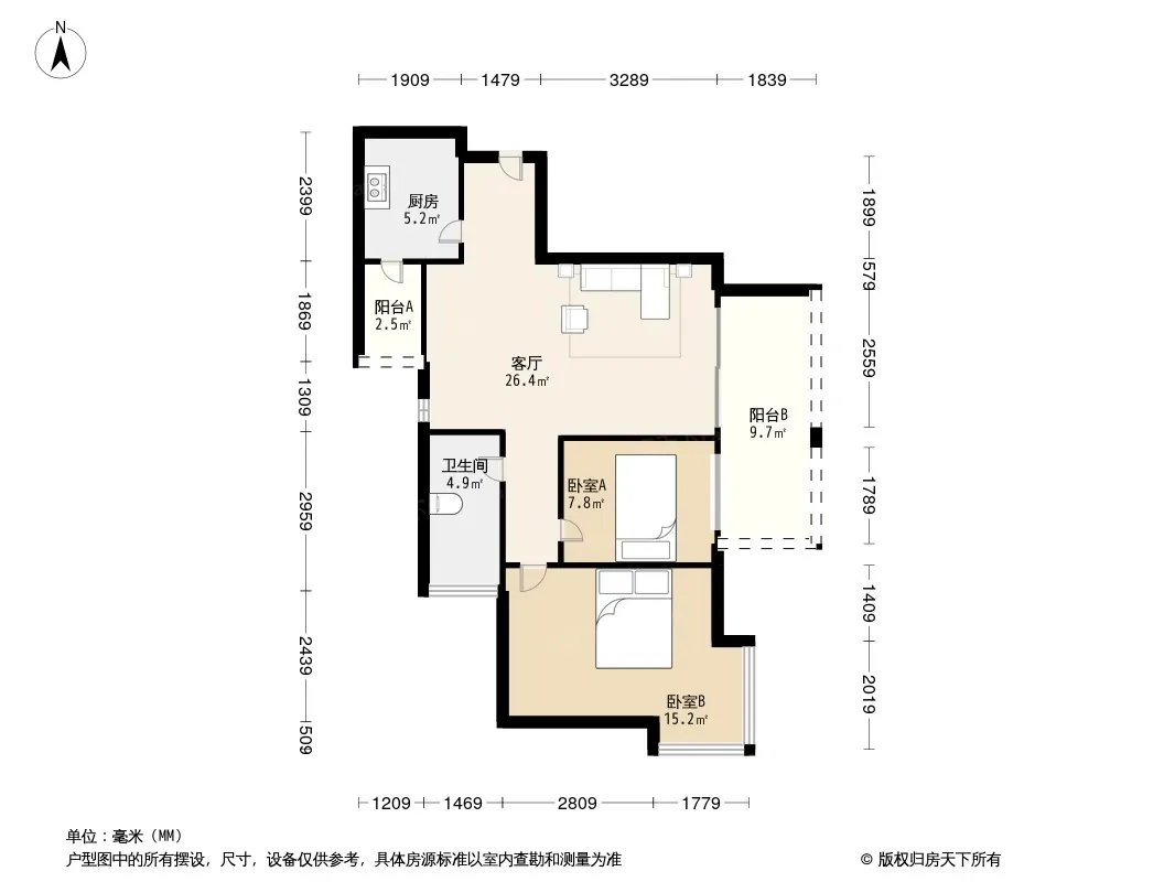 户型齐全,主打户型方正,客厅朝南,双阳台二居
