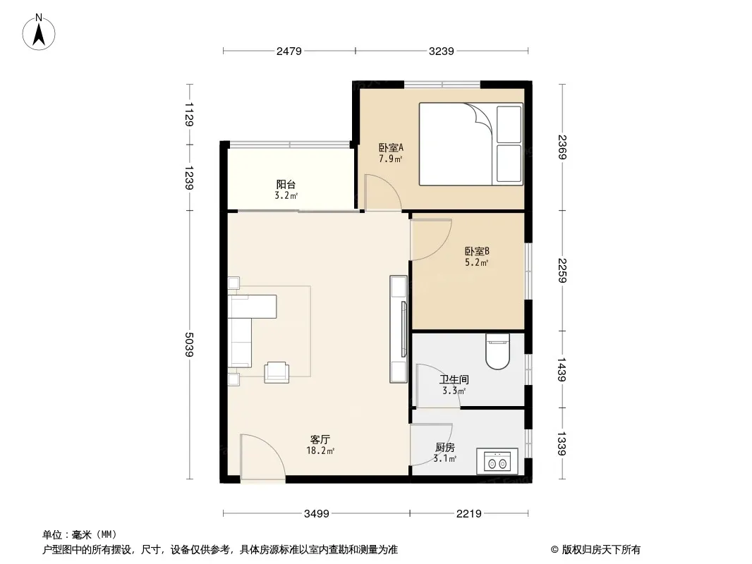户型齐全,主打明卫,明厨,客厅朝南,全明格局二居