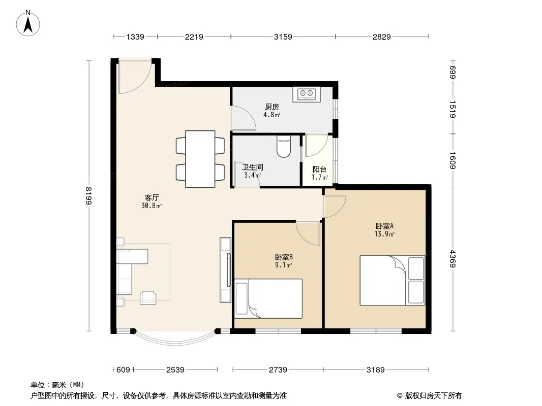 户型齐全,主打明卫,明厨,客厅朝南,全明格局二居