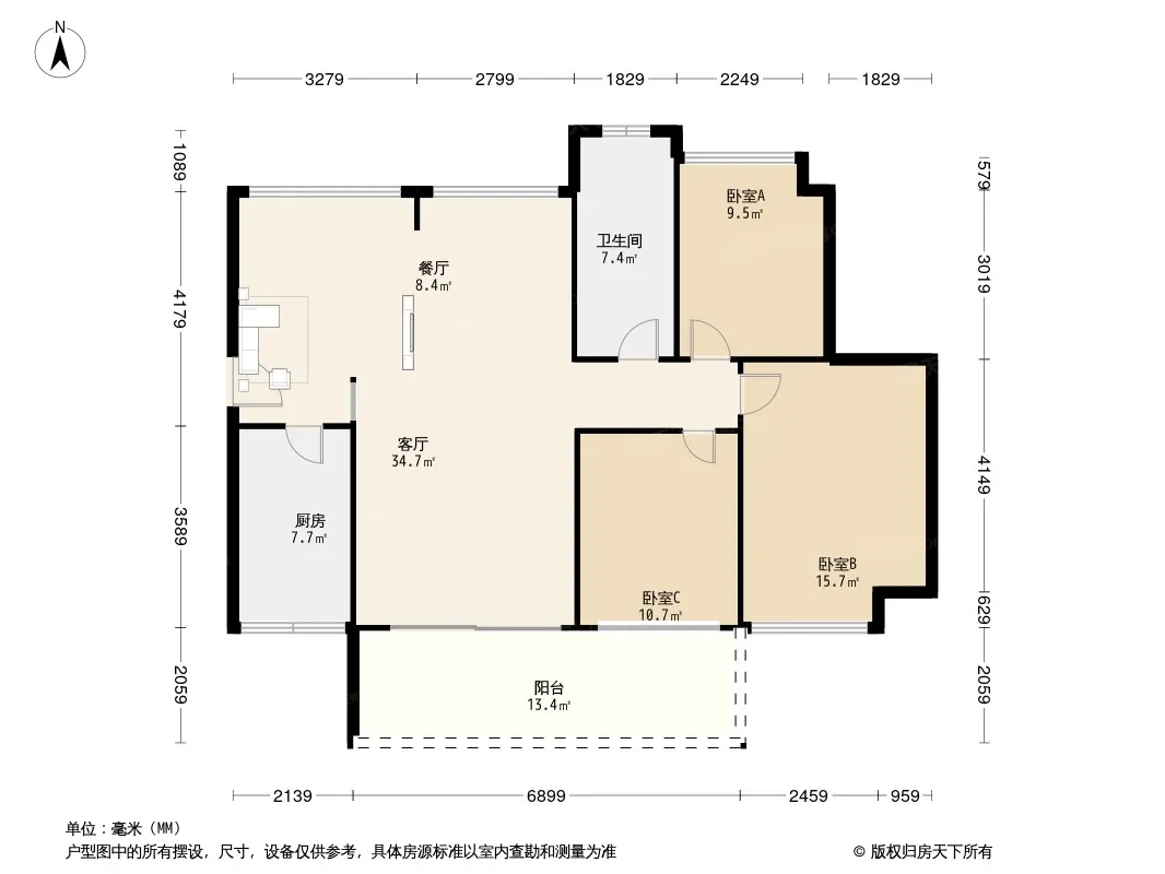 户型齐全,主打户型方正,明厨,明卫,客厅朝南,主卧朝南三居