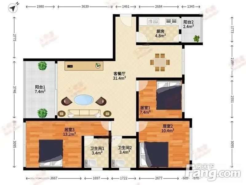 3室1厅2卫