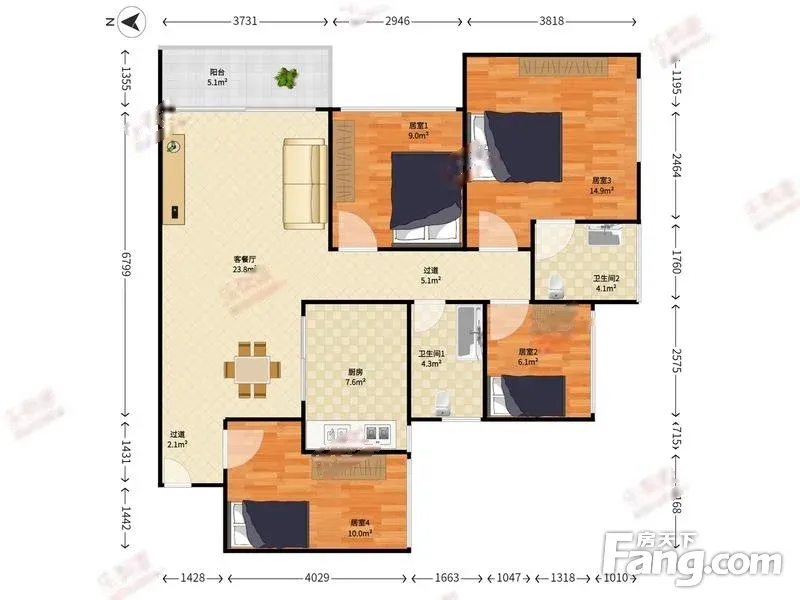 户型齐全,主打明卫,客厅朝南,双阳台,双卧朝南,主卧朝南四居