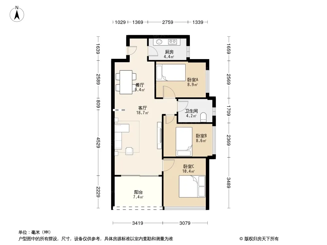 3室2厅1卫